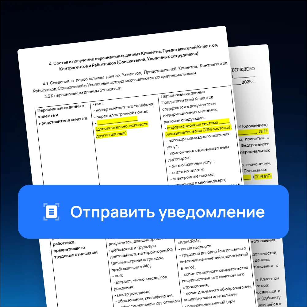 Если у вас есть хотя бы один сотрудник, или вы собираете контактные данные клиентов через сайт, соцсети, заявки или мессенджеры — вы обрабатываете персональные данные. А значит, обязаны подать уведомление в Роскомнадзор.